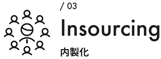 マーケターの育成、マーケティングが駆動する事業の実現、のために必須となるマーケティング機能の内製化を支援します。外部への依存を下げ、ノウハウが社内に蓄積する構造に変革します。